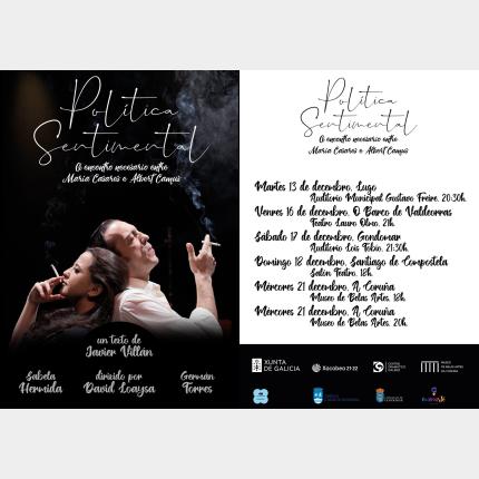 O mércores 21 de decembro acolleremos a representación da obra de teatro 'Políticas sentimentales', que recrea un encontro entre María Casares e Albert Camus.
