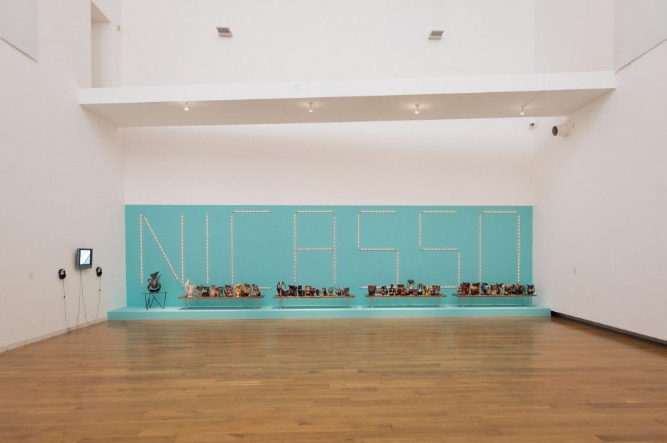 The exhibition has now recovered the piece "Nicasso", which features a collection of ceramics representative of the post-Picasso Vallauris. The piece is presented alongside a selection of related works, most notably "Nicasso, el film" ("Nicasso, the film"), in which Pazos assembles a collage of scenes drawn from commercial films produced between 1950 and 2000, in which Picasso is cited or evoked as a symbol of extravagance. Also included is a documentary video by Vacca on the first public presentation of the work in the Museu Abelló de Mollet del Vallès. On this occasion, the installation was displayed in a space resembling a shop window, visible to passers-by twenty-four hours a day, as though it were a shop.