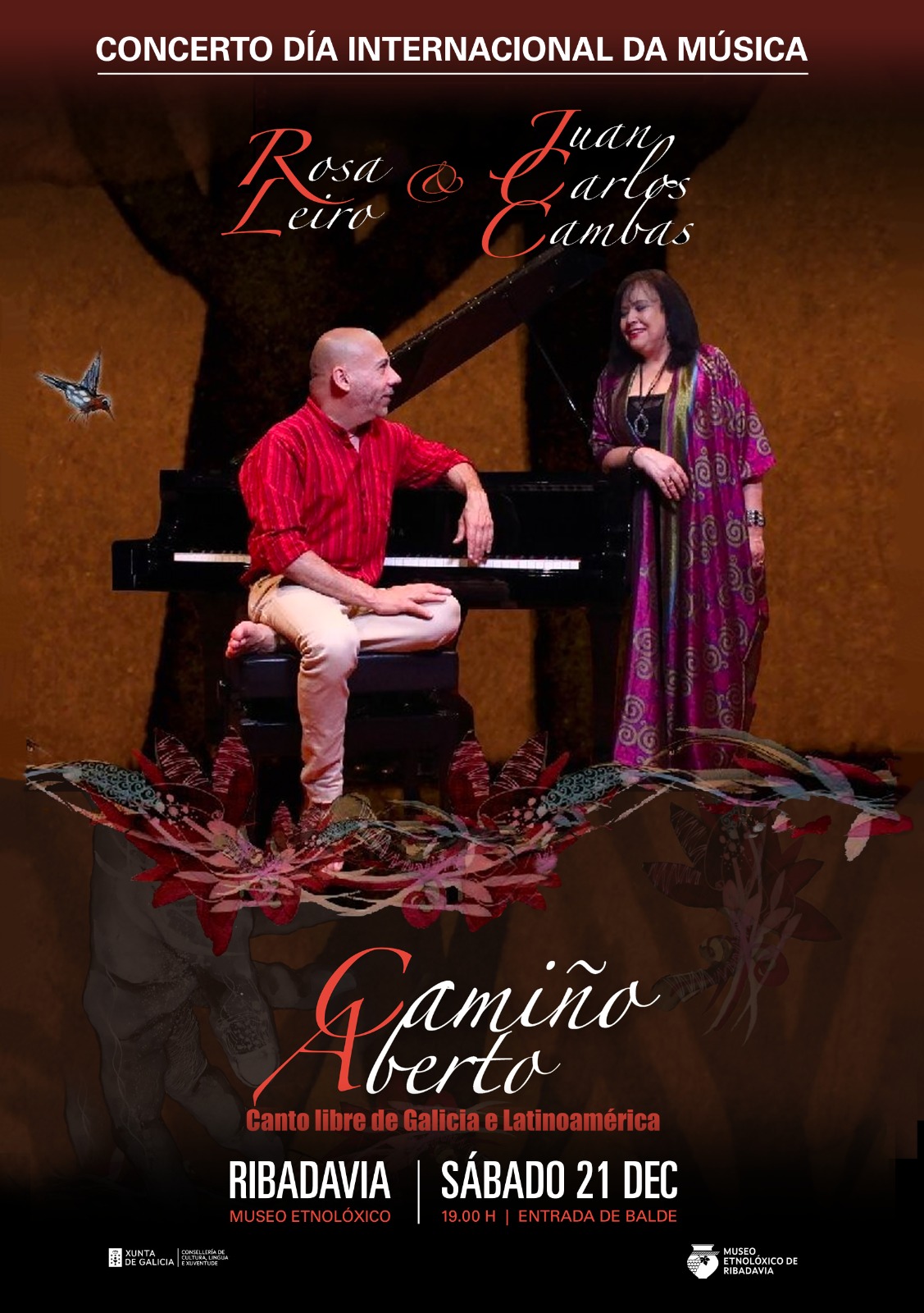 Festejando el Día Internacional de la Música, la cantante gallega Rosa Leiro y el pianista argentino-gallego Juan Carlos Cambas presentan en el Museo Etnolóxico su último disco: "Camiño abierto: Cuanto libre de Galicia & Latinoamérica", un espectáculo íntimo basado en la voz y el piano, con un repertorio que incluye grandes autores y compositores gallegos y latinoamericanos, y obras inéditas que ven la luz por primera vez en este proyecto, con temáticas profundas y reflexivas que transportan a diferentes lugares y momentos.