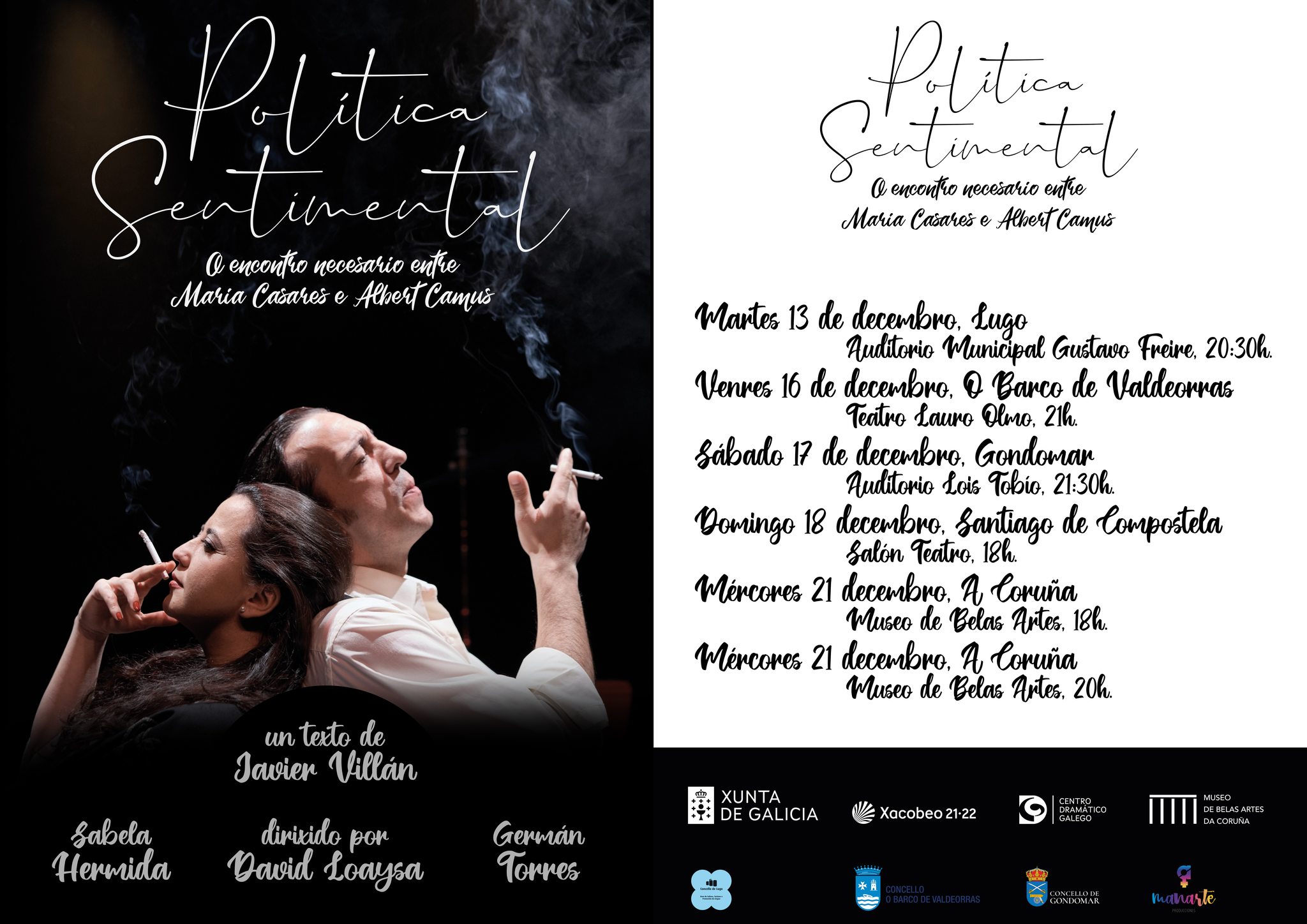 El miércoles 21 de diciembre acogeremos la representación de la obra de teatro 'Política sentimentale', que recrea un encuentro entre María Casares y Albert Camus.