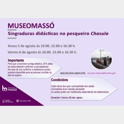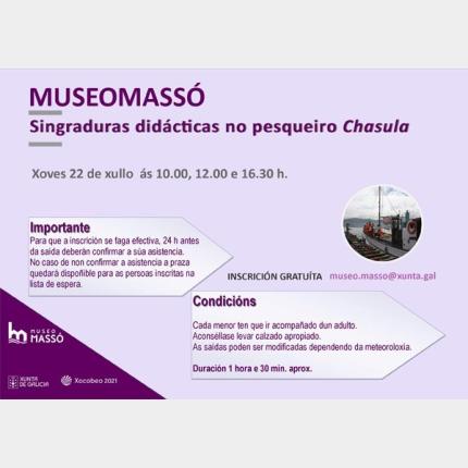 Las singladuras se realizan en el barco pesquero de madera "Chasula" y tienen un carácter didáctico con el objeto de ofrecer al visitante del museo una experiencia real que