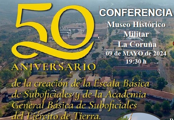 O vindeiro xoves 09 de maio ás 19:30 horas, no Museo Histórico Militar da Coruña, impartirase a Conferencia "250 Aniversario da creación da Escala Básica de Suboficiais da Academia Xeral Básica de Suboficiais do Exército de Terra". Conferenciante: D. Jerónimo F. Naranjo García, licenciado en Historia, Dr. en Paz e Seguridade.