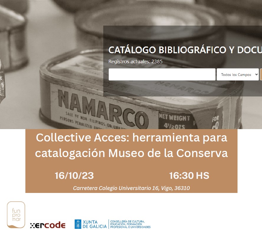 16 de outubro - 16:30h Collective Acces: ferramenta para a catalogación Museo da Conserva Presentación pública do programa de catalogación da colección