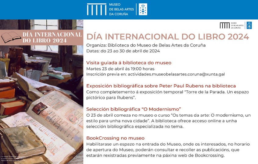 Do 23 de abril ao 30 de abril do 2024 - 10:00h Día Internacional do Libro 2024 Actividades para a celebración do Día Internacional do Libro no Museo de Belas Artes da Coruña