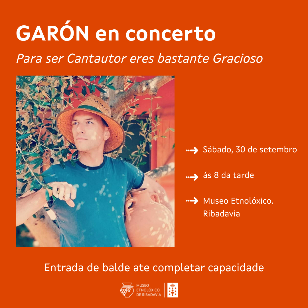 Garón en concerto no Museo Etnolóxico de Ribadavia o sábado, 30 de setembro ás 20:00 horas.