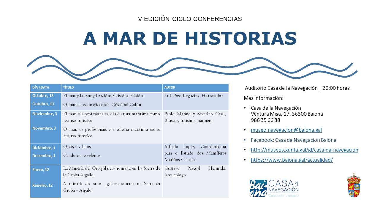 A Concellería de Cultura do Concello de Baiona presenta a V edición do programa divulgativo A Mar de Historias.