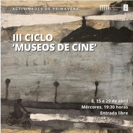 O Museo de Belas Artes da Coruña volve convocar este ciclo de cine, tras a boa acollida doas anos anteriores. Baixo o lema “Museos de Cine”, e co obxectivo de redescubrir as salas dos museos, as galerías de arte, a actividade que alí se realiza e o papel dos seus protagonistas, para así, ao través da mirada do autor, coñecer a tremoia que se esconde tras estas grandes e/o pequenas institucións culturais.