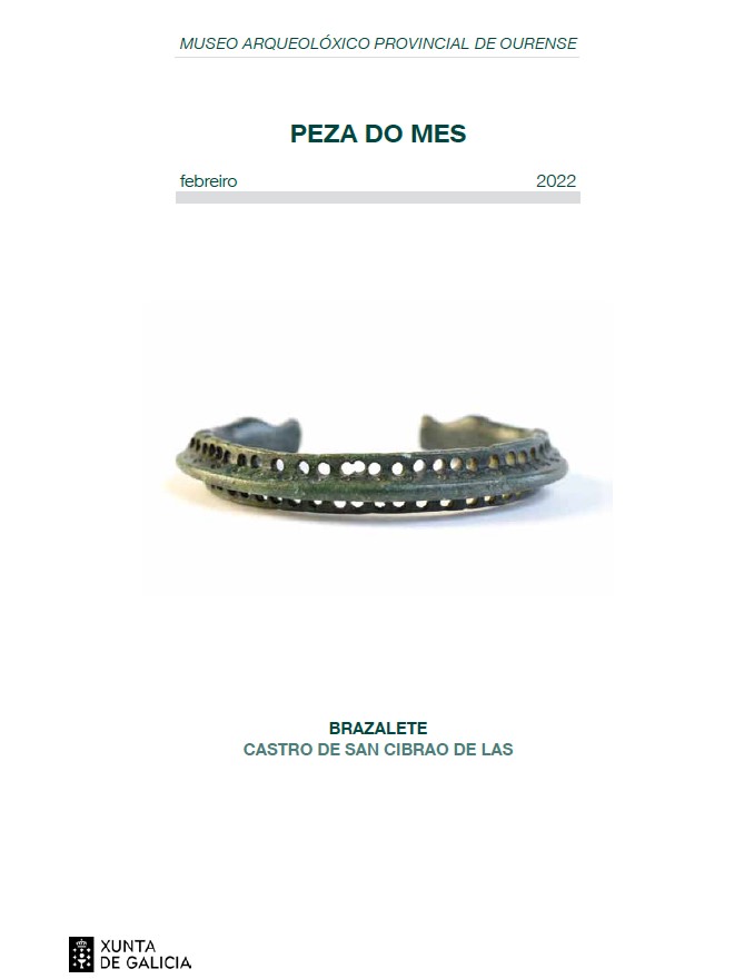 Do 1 de febreiro ao 28 de febreiro do 2022 - 10:00h Peza do mes: Brazalete. Castro de San Cibrao de Las Presentación e publicación virtual mensual para afondar no coñecemento de pezas pertencentes ao fondo do Museo