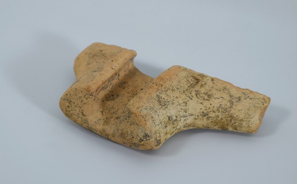 Trátase dun fragmento de mortarium, do que só se conserva o arranque do corpo co pico vertedoiro, con dimensións máximas de 12,3 x 5,8 cm, de pasta arxilosa, moi depurada, de cor ocre. A ambos os lados da canle presenta sendas cartelas con marcas impresas. Na marxe dereita do vertedoiro oblicua á canle de desaugadoiro, a cartela contén o selo completo: SATURNIN(I), cunha ordenación de lectura do texto do exterior ao interior do bordo, que nos indica o nombre do propietario ou director do obradoiro onde foi realizado. No outro lado, tamén oblicuo ao vertedoiro, leva unha nova cartela, anepigráfica, cun ramo de palma, motivo que habitualmente acompaña os produtos asinados por Saturninus.