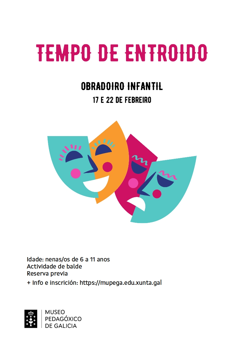 O Entroido é unha das festas máis sinaladas da nosa terra, existindo moitas variantes do mesmo cunha gran oferta cultural, gastronómica e festiva. Neste obradoiro a rapazada poderá aprender un pouco máis da súa historia e tradicións así como explorar o seu lado máis artístico mediante a confección dunha máscara típica dun dos entroidos máis ancestrais de Galicia, o de Vilariño de Conso.