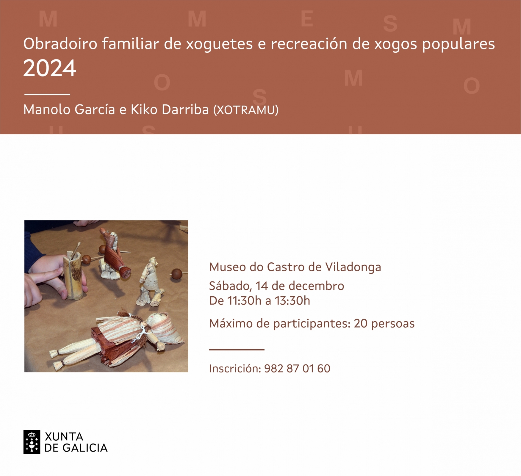 14 de decembro - 11:30h Xoguetes e recreación de xogos populares Obradoiro familiar no Museo do Castro de Viladonga