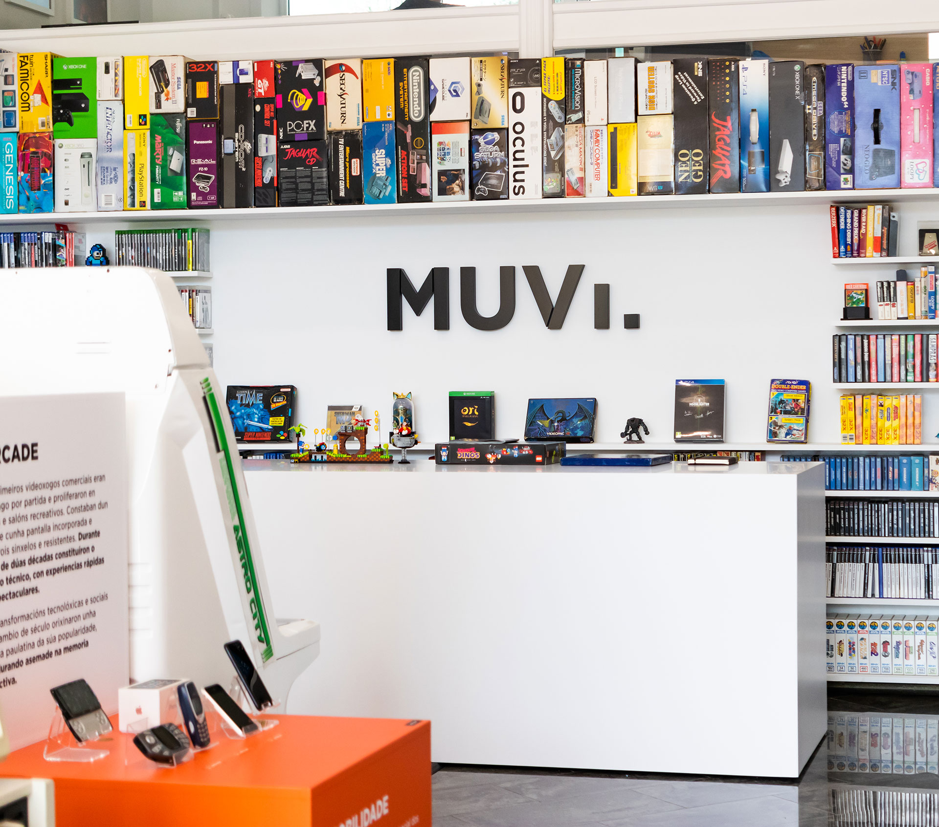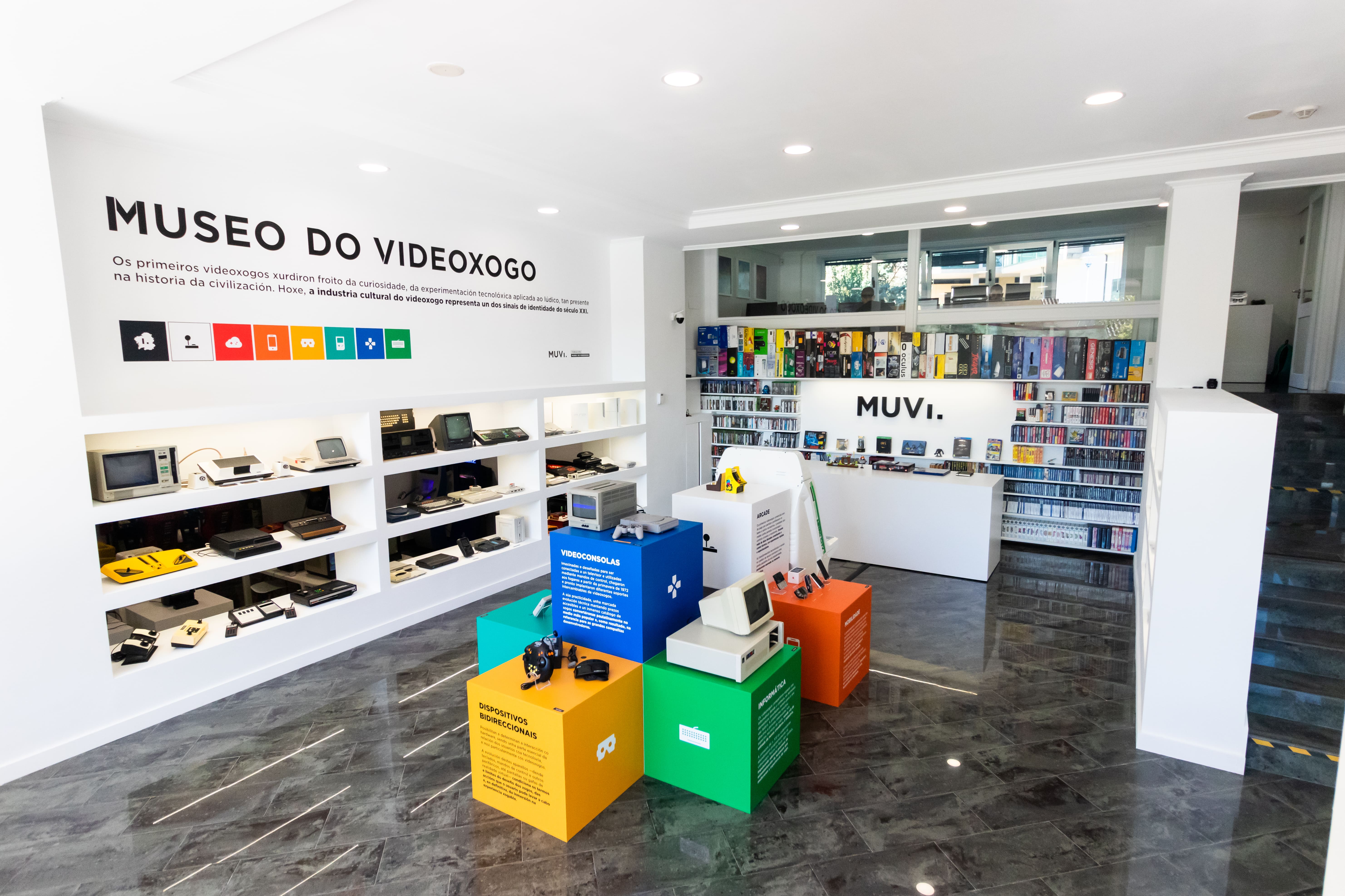Ao acceder ao museo atopámonos coa área principal de exposicións, o núcleo que artella o resto de áreas. As pezas e contidos dispoñibles neste espazo son a máxima expresión do obxectivo do MUVI de divulgar a historia, o contexto, o sentido e os valores do videoxogo.