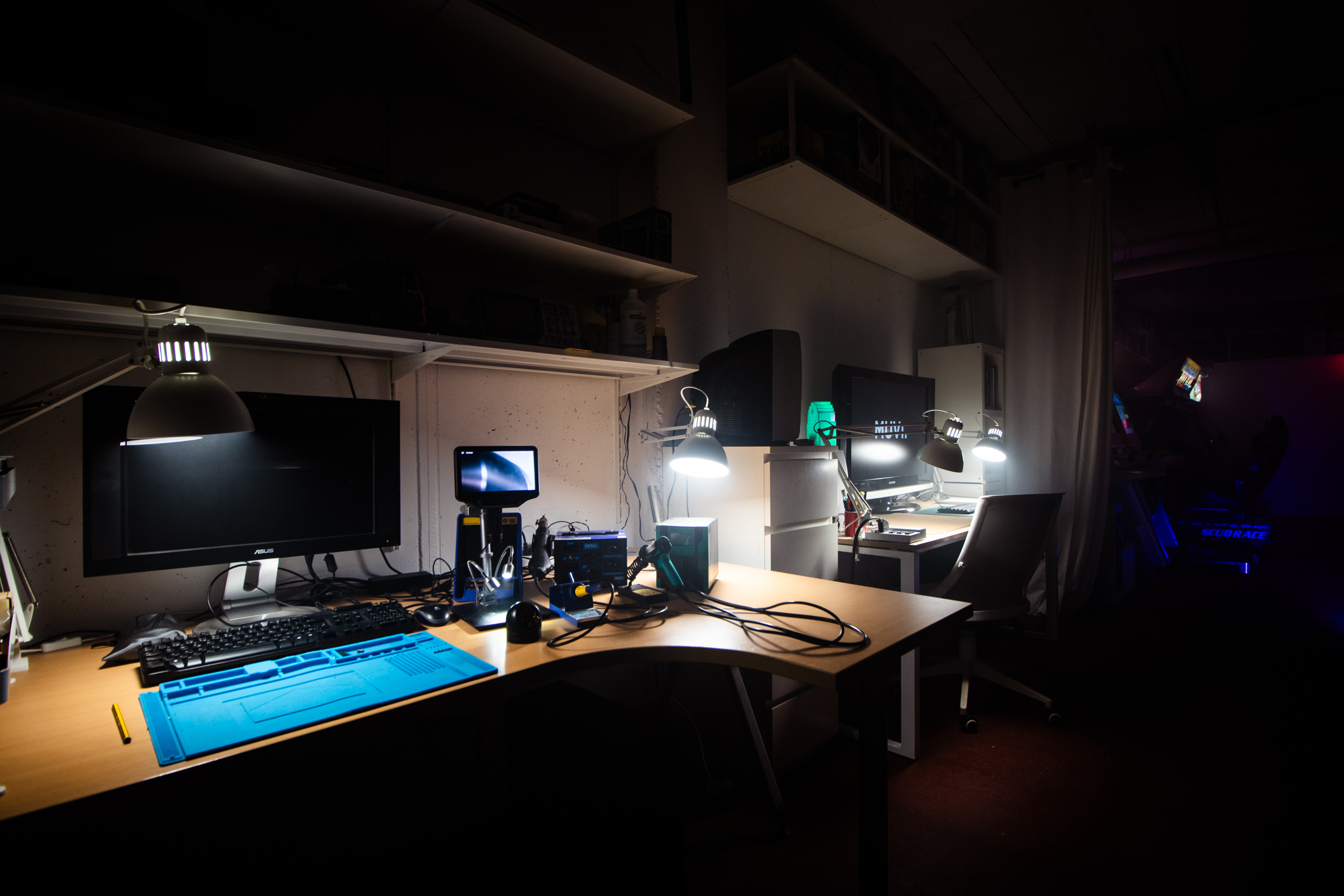 No piso baixo, está o espazo de experimentación. Trátase dunha área ampla equipada con todo tipo de dispositivos, sistemas de control e monitores, pensada para a interacción do público con títulos clave na historia do videoxogo.
