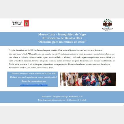 XI Concurso de Relatos do Museo Liste de Vigo convocado co gallo da celebración do Día das Letras Galegas (17 de maio).