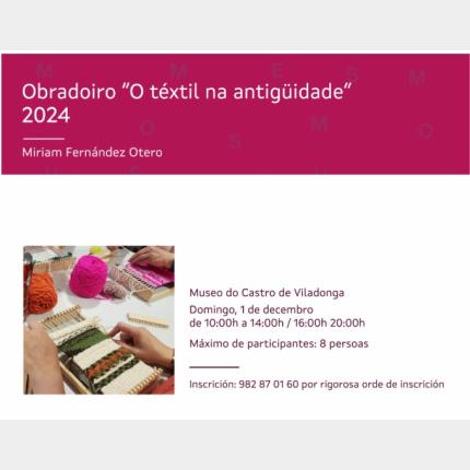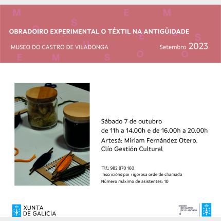 O vindeiro sábado, 7 de outubro levarase a cabo un obradoiro experimental sobre o téxtil na Antigüidade, da man da artesá Miriam Fernández Otero.